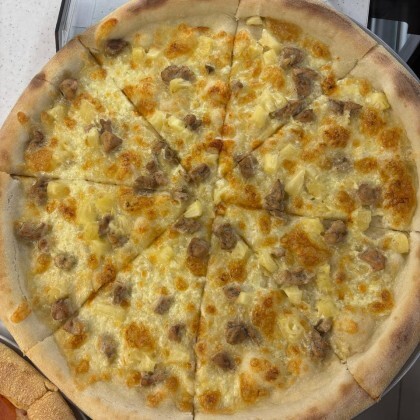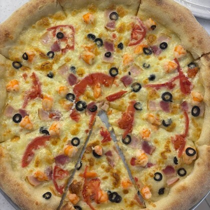 Сливочный соус,моцарелла,ветчина,шампиньоны